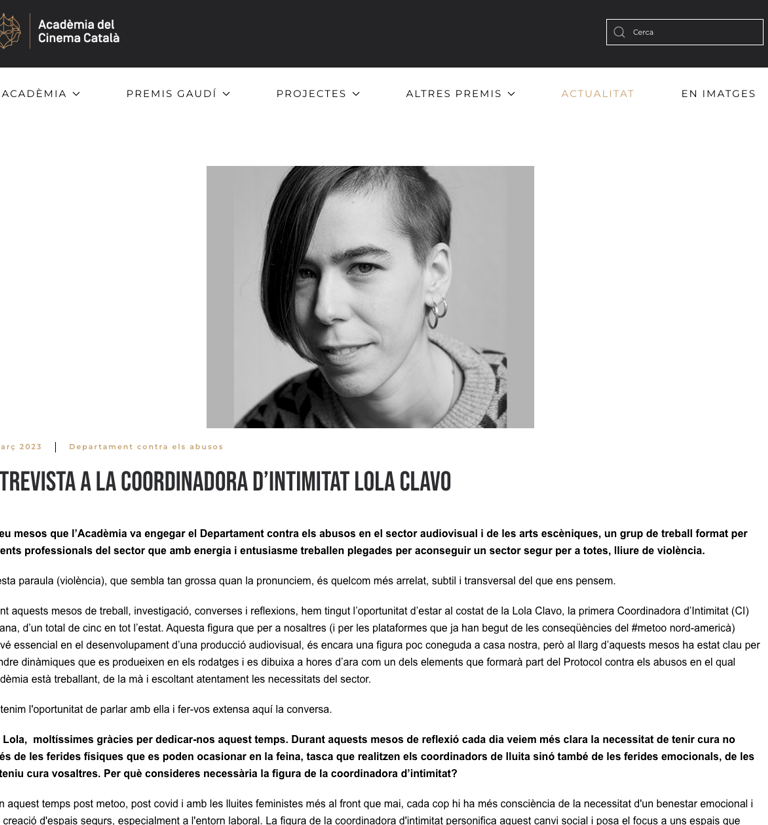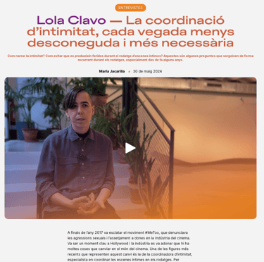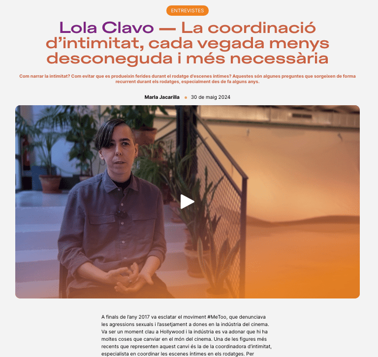 La Lola va participar a la passada edició d’#AccióDonesVisuals i va compartir amb nosaltres la seva experiència i visió sobre la coordinació d’intimitat.