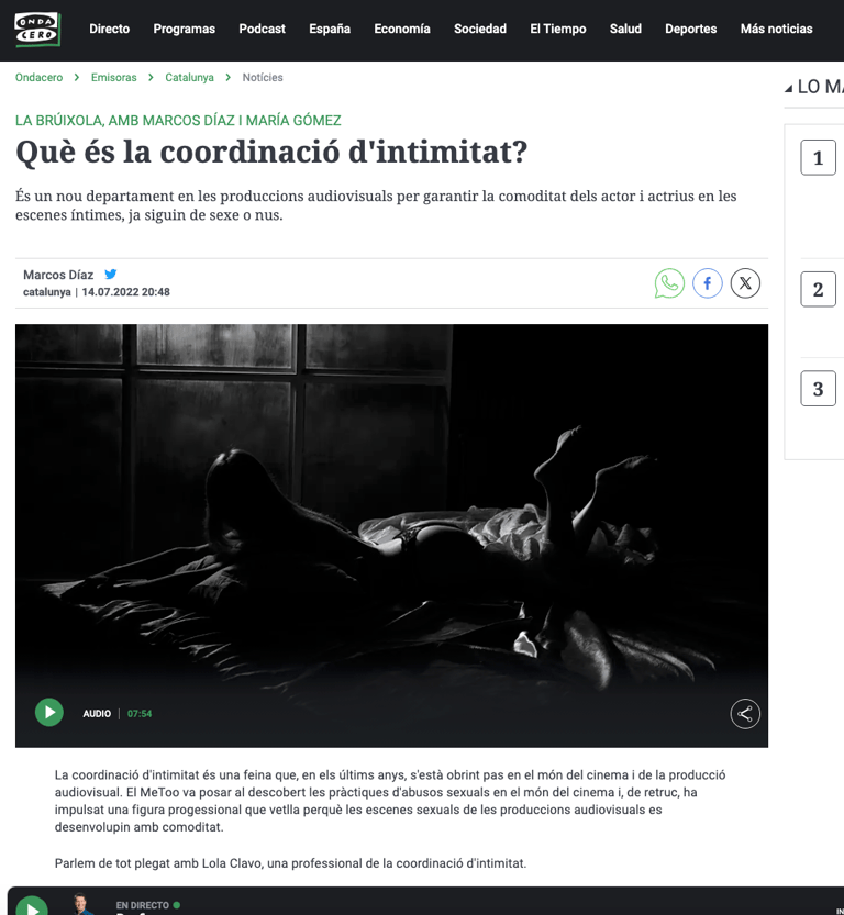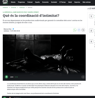 Un nou departament en les produccions audiovisuals per garantir la comoditat dels actor i actrius en les escenes íntimes, ja siguin de sexe o nus.